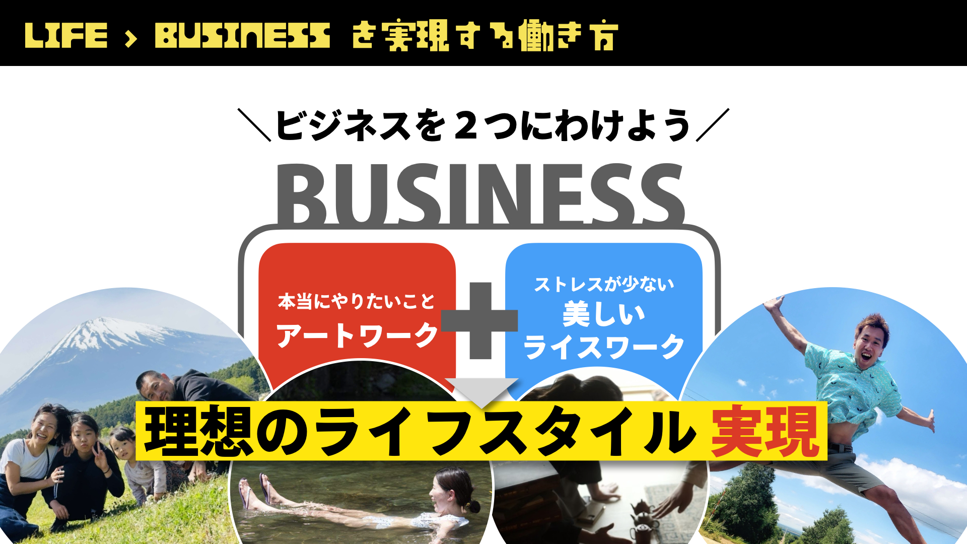 まずは「美しいライスワーク」で生活を安定させながら、本当にやりたい「アートワーク」を育てていく。このアプローチが「LIFE > BUSINESS」を実現する鍵なのです。