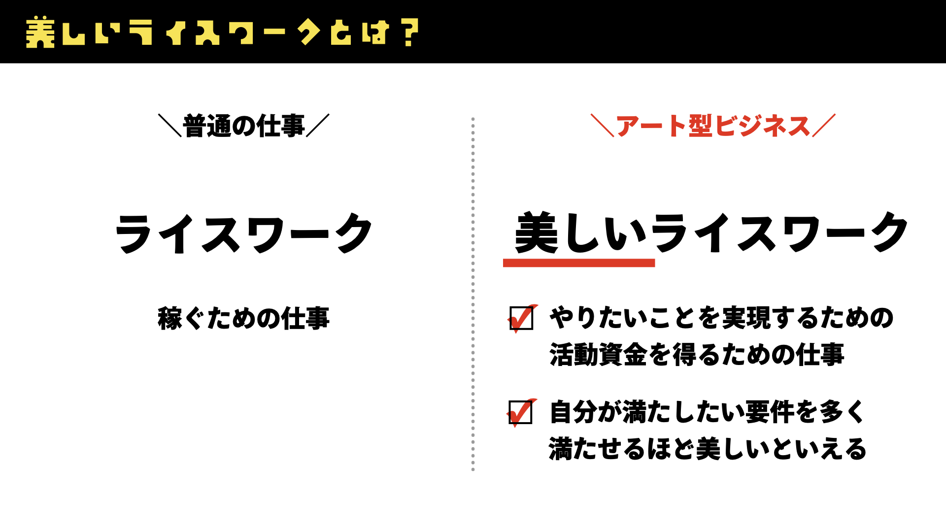 ここが最も重要なポイントです。アート型ビジネスでは、活動を2つに分けます。